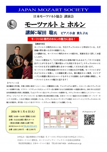 モーツァルトの管弦楽曲の中でのホルンの使われ方や役割。モーツァルトがどのようにホルンを扱い、この楽器を愛したか。彼の親友ホルン奏者、ロイトゲープとの楽譜に残されたユニークなやりとりを演奏しながら詳細に解説し、モーツァルトとホルンの魅力に迫ります!